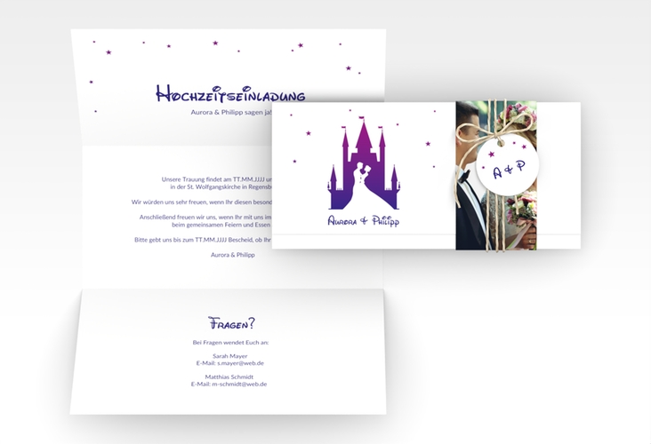 Hochzeitseinladung "Castle" - Wickelfalzkarte + Banderole