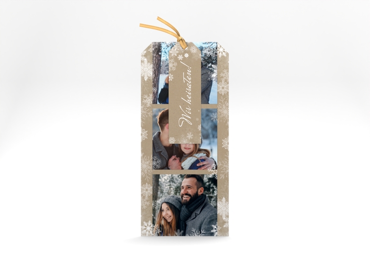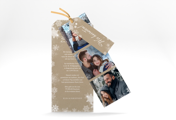 Hochzeitseinladung Snowfall Kartentrio Kraftpapier mit Schneeflocken für Winterhochzeit Hochzeitseinladung Snowfall Kartentrio Kraftpapier mit Schneeflocken für Winterhochzeit