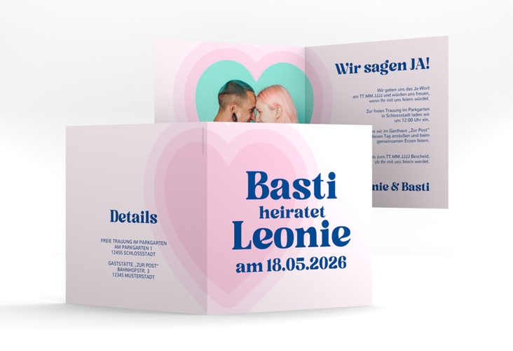 Hochzeitseinladung "Retroherz" - quadr. Klappkarte
