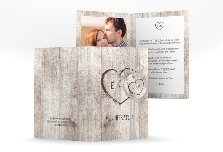 Einladungskarte Hochzeit "Wood" - A6 Klappkarte hoch