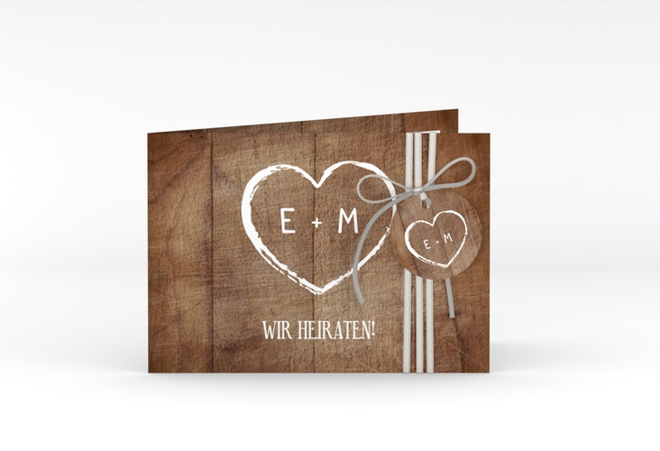 Hochzeitseinladung "Wood" - A6 Klappkarte quer
