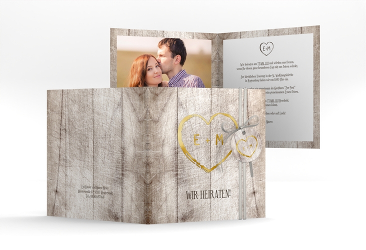 Hochzeitseinladung "Wood" - quadr. Klappkarte