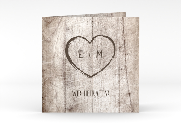 Hochzeitseinladung "Wood" - quadr. Klappkarte