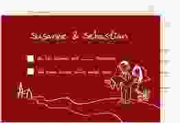 Alles andere als langweilig sind die Einladungskarten zur Hochzeit, die Tischkärtchen und Menükarten der Kollektion Pisa. Gehalten in der Trendfarbe Lila macht ihr süßes Design sie zu etwas ganz Besonderem. Die liebevoll gezeichneten Strichmännchen repräsentieren das Ehepaar auf spielerische Art und Weise. Schnell und einfach kann das Brautpaar zudem eigene Fotos und Texte einfügen.