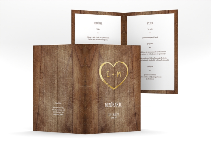 Menükarte Hochzeit "Wood" - A5 Klappkarte hoch