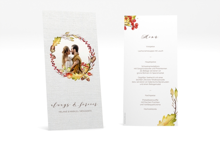 Menükarte Hochzeit "Herbstlich" - lange Karte hoch