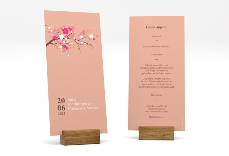 Menükarte Hochzeit "Sakura" - lange Karte hoch