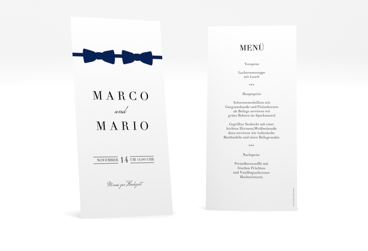 Menükarte Hochzeit "Suits" - lange Karte hoch