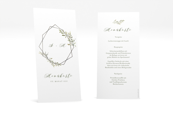 Menükarte Hochzeit "Acacia" - lange Karte hoch