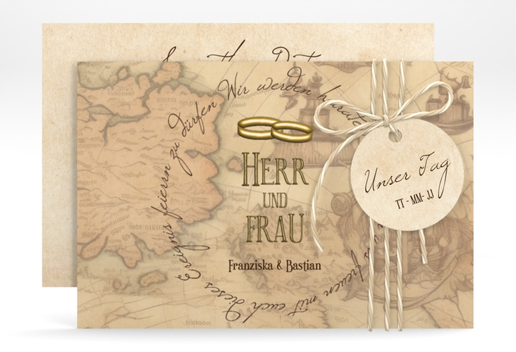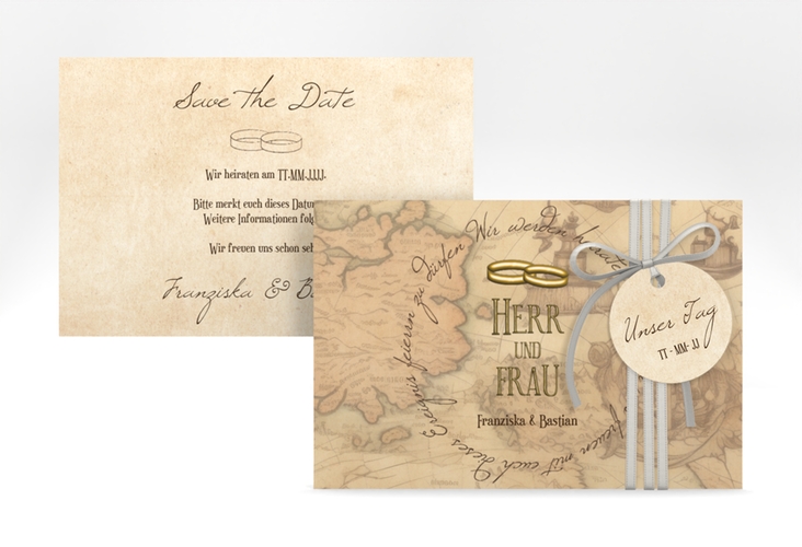 Save the Date-Karte Zwei Ringe A6 Karte quer mit Eheringen und Fantasy-Landkarte Save the Date-Karte Zwei Ringe A6 Karte quer mit Eheringen und Fantasy-Landkarte