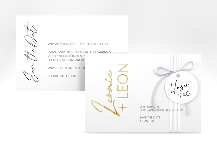 Save the Date-Karte Your Name A6 Karte quer weiss gold   Save the Date-Karte Your Name A6 Karte quer weiss gold