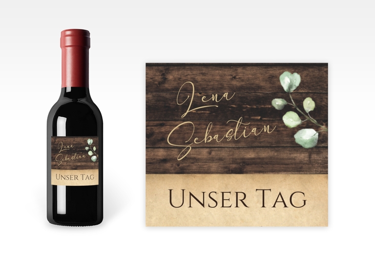 Piccoloetikett Hochzeit Landhaus Etikett Piccolo in Holz-Optik mit Eukalyptus