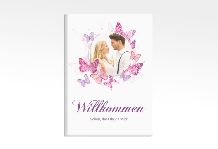 Willkommensschild Leinwand Schmetterlinge 50 x 70 cm Leinwand pink