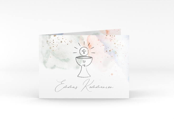 Kommunionseinladung "Buntheit" - A6 Klappkarte quer