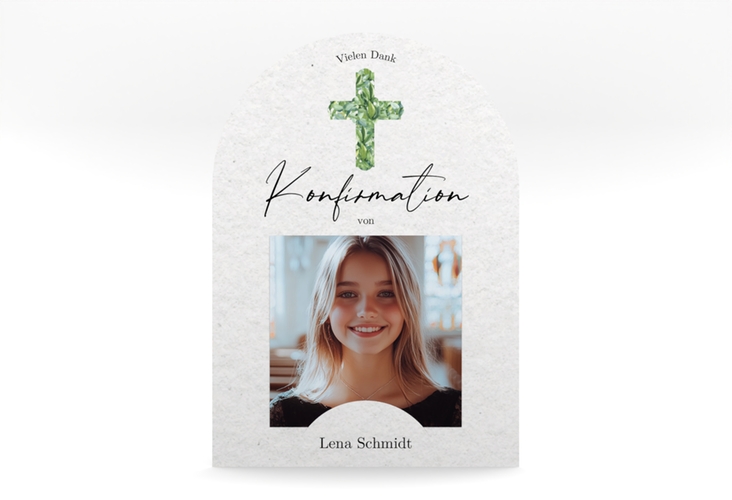 Danksagung Konfirmation "Greenery Cross" - mittlere Bogen-Karte + Foto