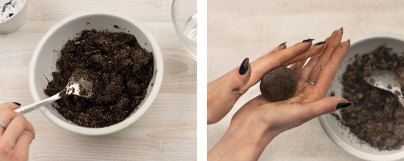Nun können wir aus der Samen-Erd-Mischung walnussgroße Kugeln formen und zum Trocknen für 1-2 Tage an einen warmen Ort legen.