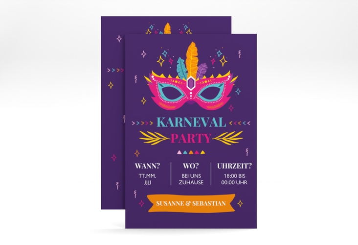 Party Einladungskarte "Karneval" - A6 Karte hoch