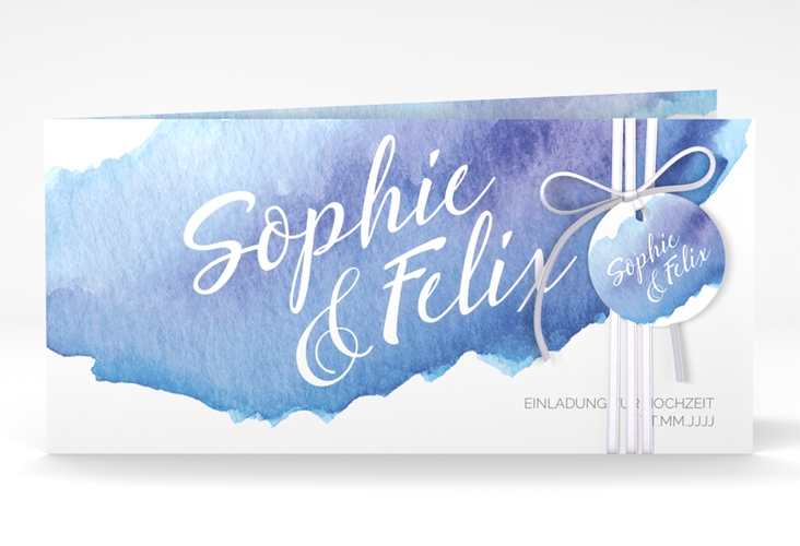 Hochzeitseinladung "Aquarella" - lange Klappkarte quer