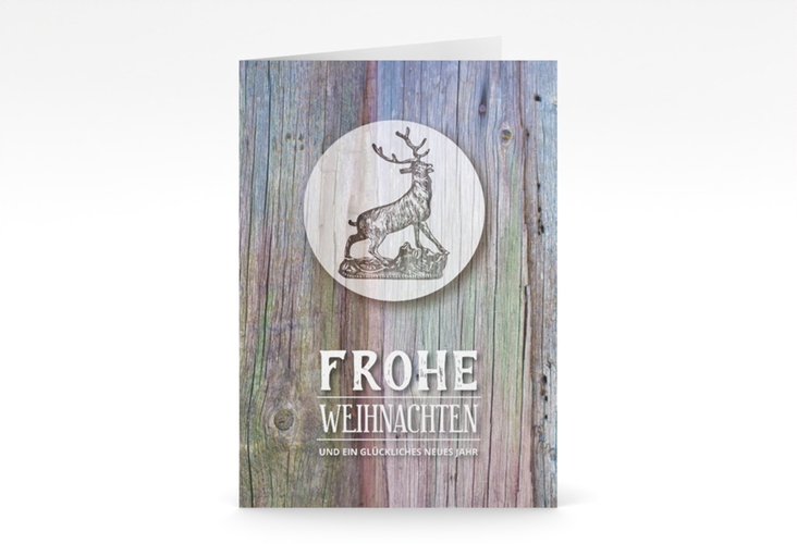 Geschäftliche Weihnachtskarte Rustikal A6 Klappkarte hoch grau in Holz-Optik mit Hirsch Geschäftliche Weihnachtskarte Rustikal A6 Klappkarte hoch grau in Holz-Optik mit Hirsch