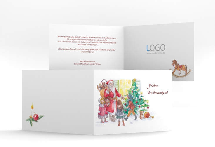 Business-Weihnachtskarte Beschenken A6 Klappkarte quer mit traditioneller Weihnachts-Szene Business-Weihnachtskarte Beschenken A6 Klappkarte quer mit traditioneller Weihnachts-Szene