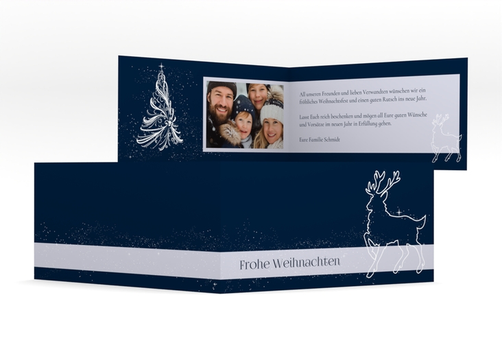 Weihnachtskarte Winterzauber lange Klappkarte quer blau hochglanz Weihnachtskarte Winterzauber lange Klappkarte quer blau hochglanz